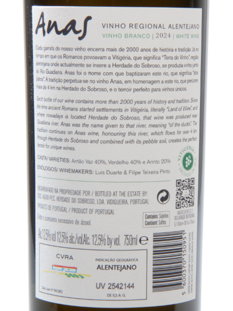 Tem alguma dúvida sobre o artigo “Herdade do Sobroso "Anas" Branco 0,75 2024” ?
