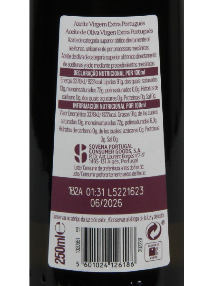 Produzido por: Sovena Portugal Consumer Goods S.A.