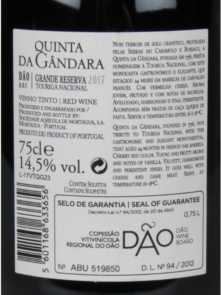 Share Quinta da Gandara Grande Reserva 2017 Touriga Nacional 0.75 Tinto :