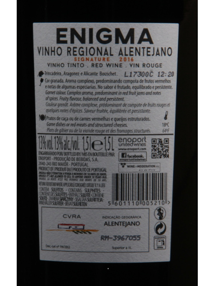 Tem alguma dúvida sobre o artigo “Enigma Signature 1,5L Tinto 2016” ?
