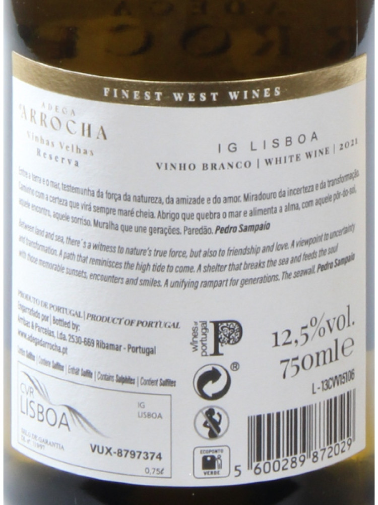 O Adega D Arrocha Paredão Reserva Branco é um vinho de cor cítrica, este é um vinho com enorme complexidade aromática, destacando-se nunces florais, um ligeiro tropical e notas cítricas. A madeira está presente, com notas de amêndoa, baunilha e caramelo, mas nunca se sobrepondo à fruta. Na boca é elegante e mineral, apresenta frescura e uma untuosidade que lhe confere presença.